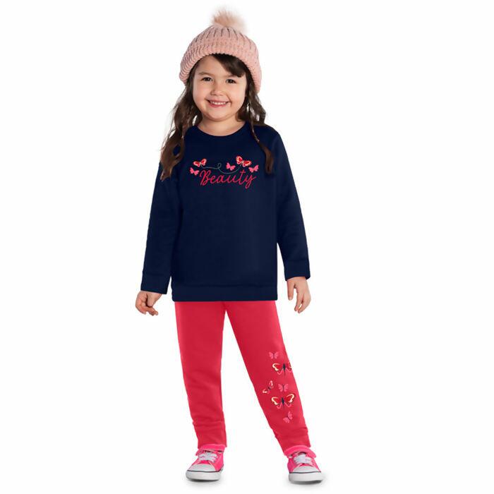 Conjunto Infantil Feminino Kyly é composto por Casaco e Calça em Moletom peluciado.