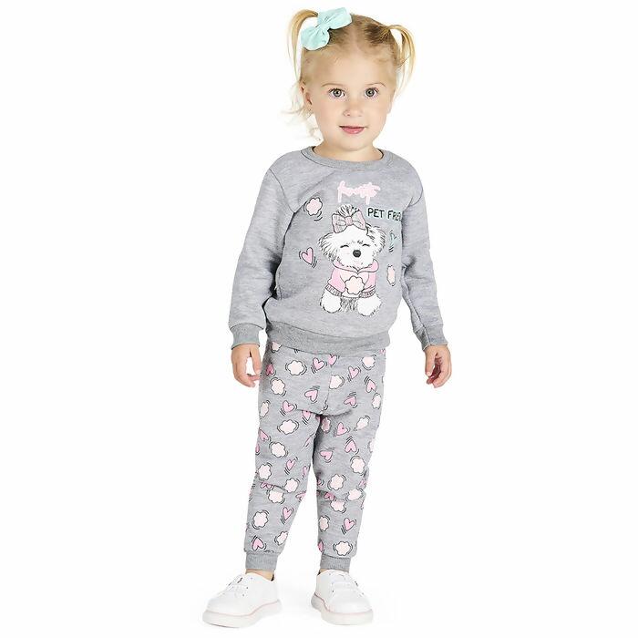 Conjunto Infantil Moletinho Flanelado com Estampa Cachorrinha