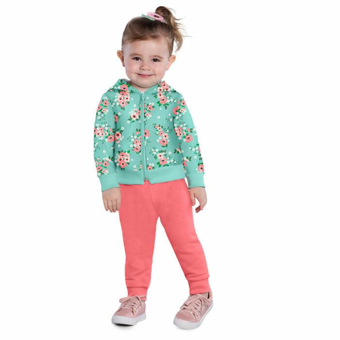 A jaqueta Bebe Feminino Kyly possui modelagem tradicional, divertida estampa frontal. A Calça bebe Feminina Kyly possui barra em molde e elástico confortável no cóse punho para maior conforto da criança.