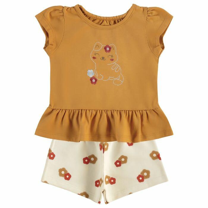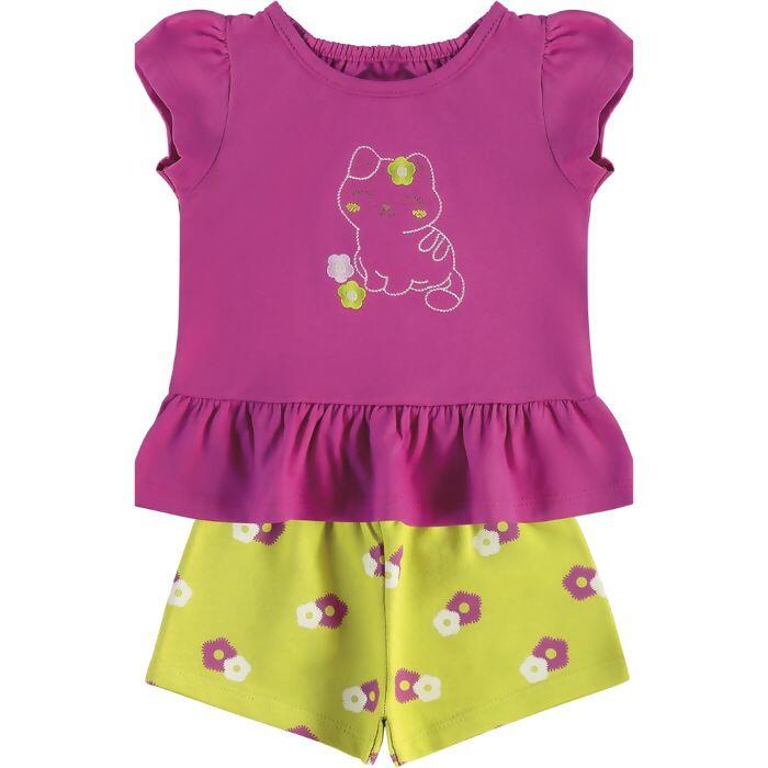 Conjunto Bebê Dila Gatinha com blusa em malha leve e short em moletinho macio, cheio de estilo e conforto. Tamanhos P ao G. Consulte nossa equipe de vendas para mais informações.