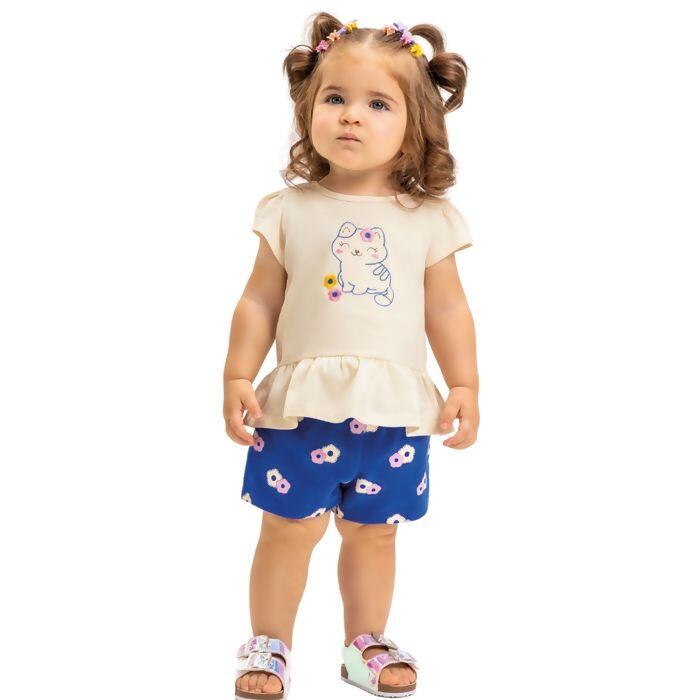 Conjunto Bebe Gatinha P ao G Blusa Malha e Short em Moletinho Dila | 04588