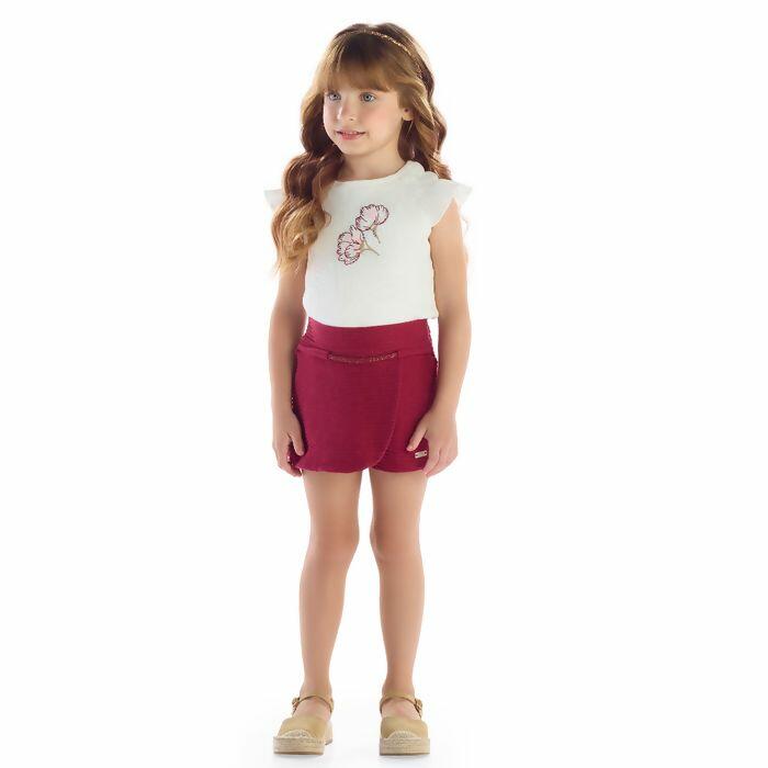 Conjunto Blusa com Bordado de Flore Shorts Saia 1 ao 4 Kiki Xodó | 2450074