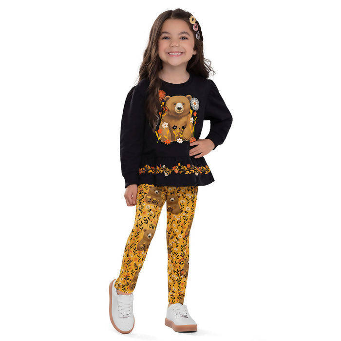 Conjunto de inverno com estampa de urso e flores, que une suavidade e encanto em uma proposta moderna e comercial. Desenvolvido para oferecer conforto térmico e liberdade de movimento, é ideal para compor vitrines infantis delicadas e atrativas durante a estação fria.