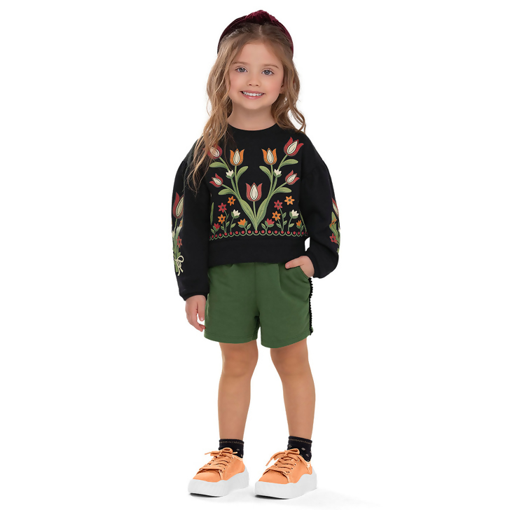 Conjunto Feminino 4 a 8 Short em Moletom Nanai | 6000406I