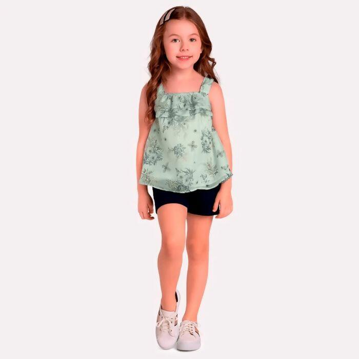 Conjunto Feminino Blusa Flores 10 ao 14 kyly milon | 14102