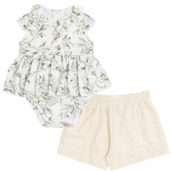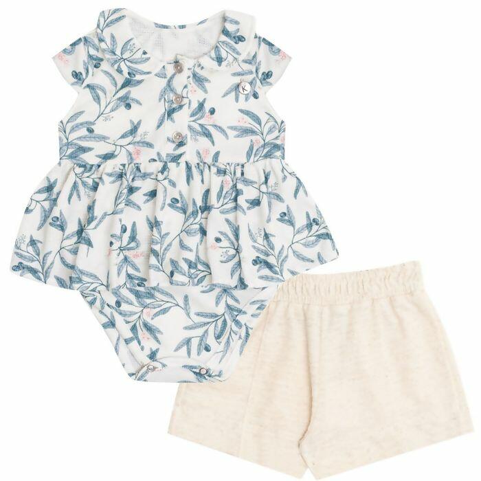 Conjunto sofisticado que veste bebês do P ao G, composto por blusa com babados, botões frontais e estampa floral encantadora, acompanhada de shorts com acabamento delicado. A proposta une charme e conforto com toque refinado, ideal para compor vitrines que valorizam a elegância desde os primeiros tamanhos.