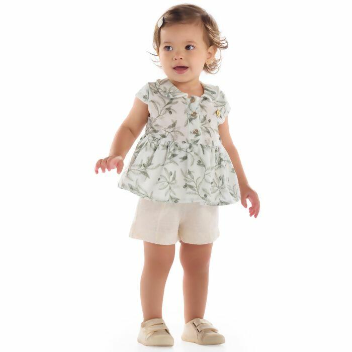 Conjunto Infantil Kiki Xodó com Blusa de Babados e Shorts Delicado