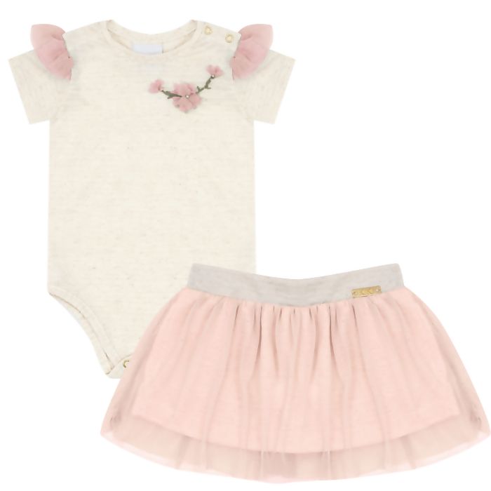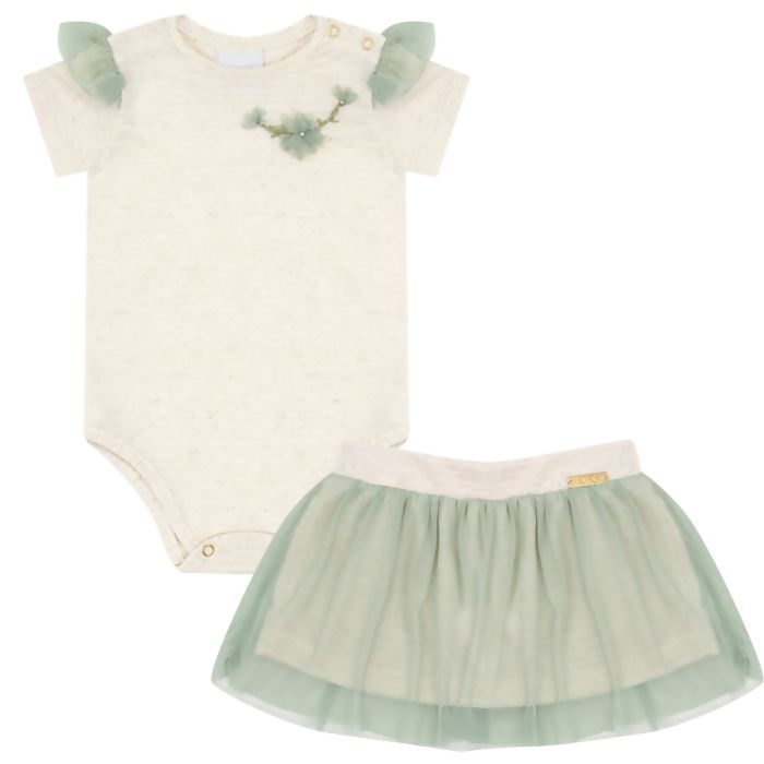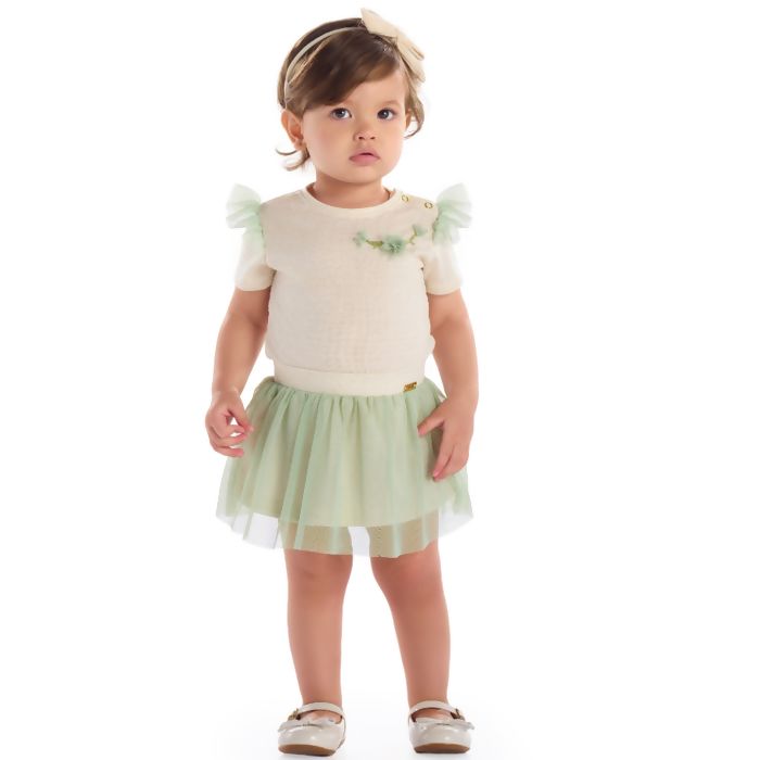 Conjunto Infantil Kiki Xodó com Body e Saia com Sobreposição em Tule