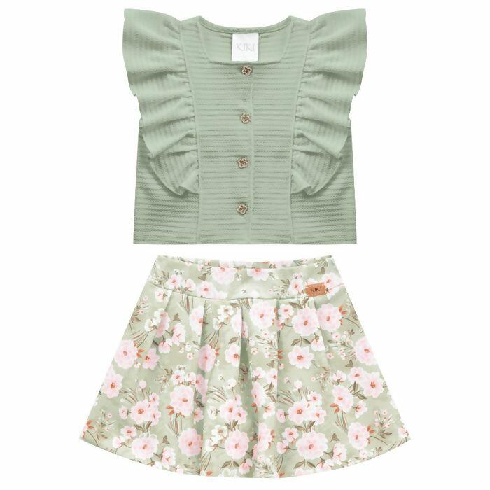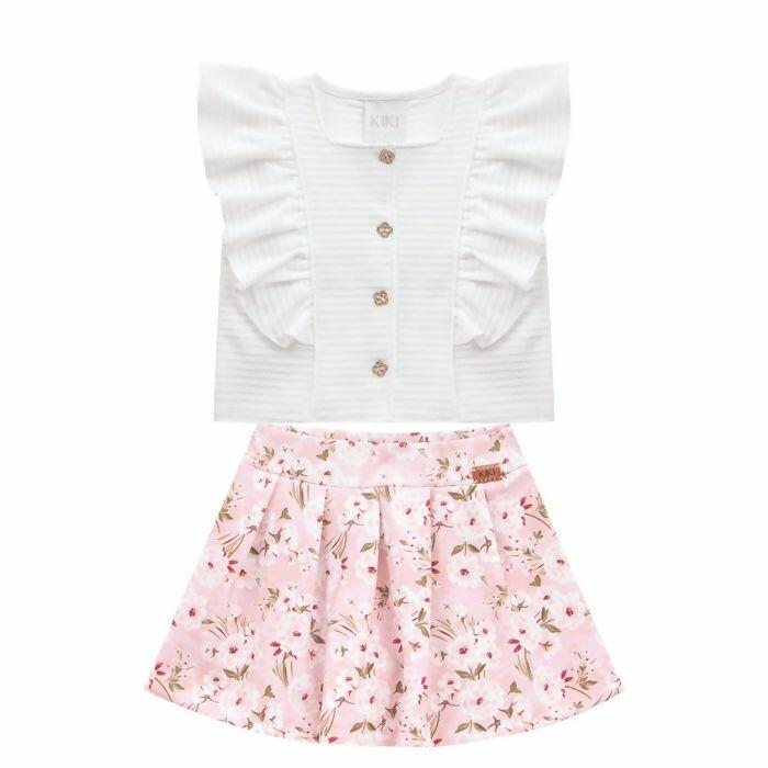 Conjunto Feminino Infantil 1 ao 4 com Saia Floral Kiki Xodó | 2400050