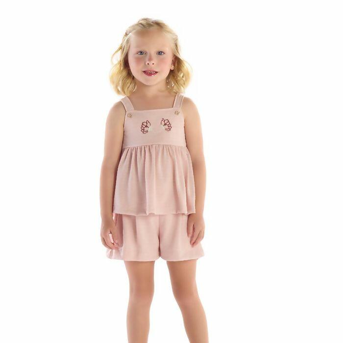 Conjunto Infantil Kiki Xodó com Bata Bordada e Shorts