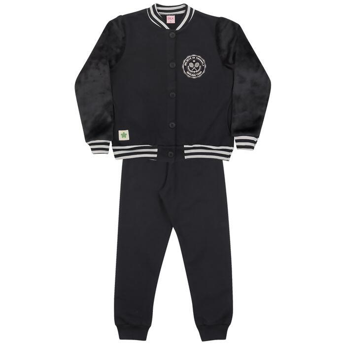 Conjunto Feminino Jaqueta Moletom Felpado com Bordado e Manga de Pelinhos com Calça Moletom Felpado 1 ao 3 - Dila
