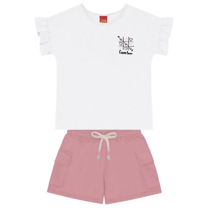 Apresentamos o conjunto feminino juvenil da Kyly, ideal para as jovens que adoram estar na moda! Com estampa lateral de jogo da velha e a escrita "Game Lover", essa peça traz um toque divertido e moderno. A blusa possui mangas com babado, enquanto o short cargo, com bolsos laterais e cordão, combina praticidade e estilo. Uma escolha perfeita para revendedores que buscam produtos exclusivos e atrativos para o público jovem. Não perca a oportunidade de encantar seus clientes com essa tendência!