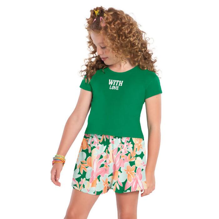 Apresentamos o conjunto perfeito para meninas modernas: blusa e short com a estampa "With Love". Esta peça exclusiva da Kyly combina conforto e charme, ideal para atrair o público jovem. Não perca a chance de renovar seu estoque com este item que promete encantar suas clientes! Garanta já o seu!