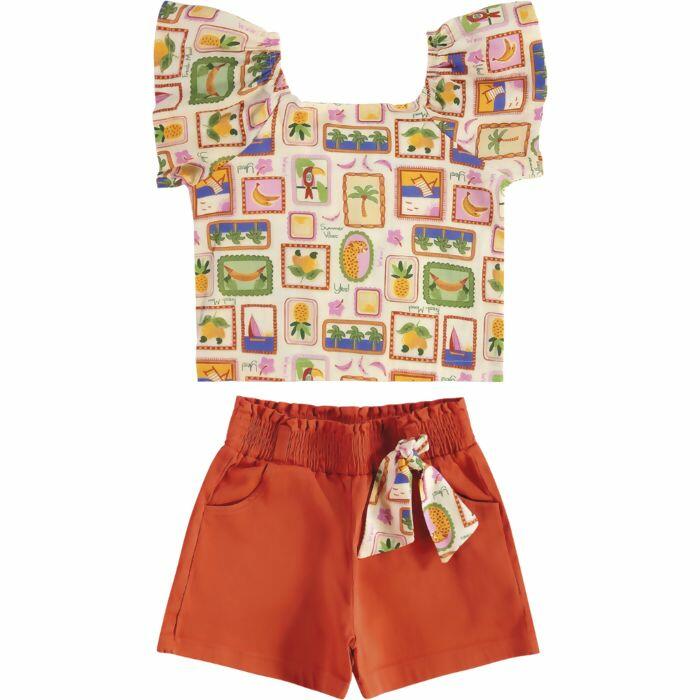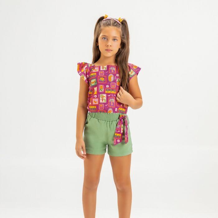 Descrição Conjunto Feminino Juvenil Short Sarja C | Elestano e Blusa Ciganinha 12 ao 16 Dila | 04620