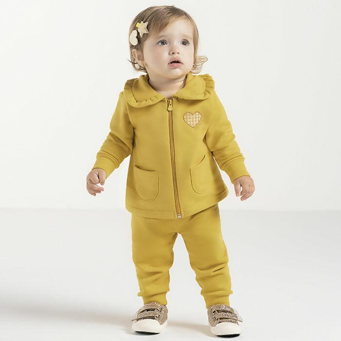 Conjunto Feminino Jaqueta Moletom Bordado Coração e Bolso Frontal com Calça Moletom Felpado P ao G - Dila