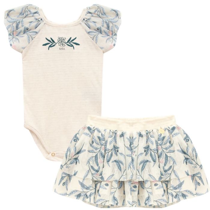 Conjunto Feminino P ao G com Body e Saia de Babados Estampada Kiki Xodó | 1400010