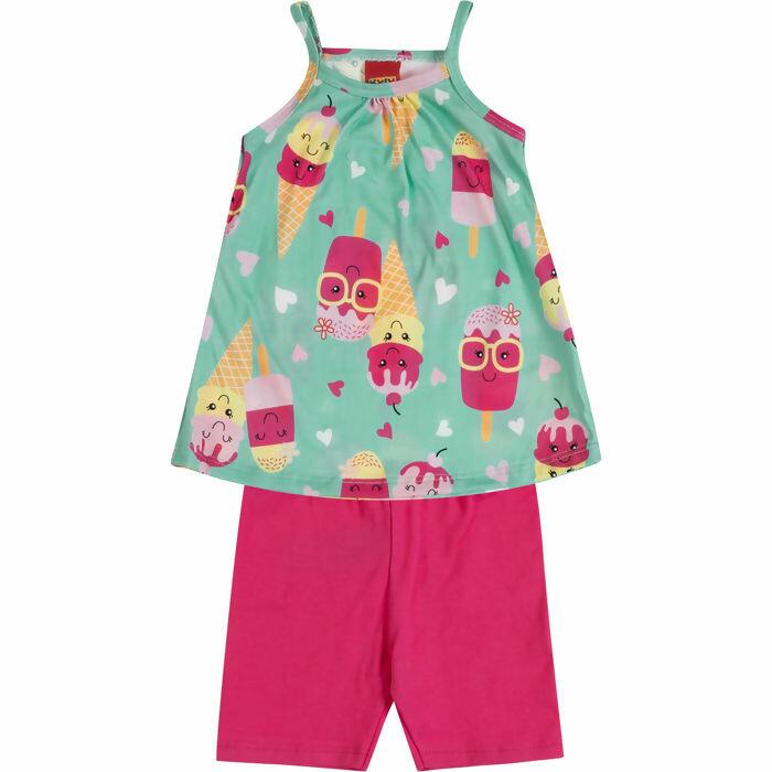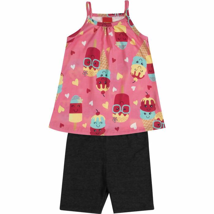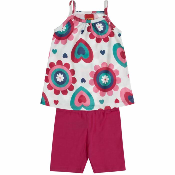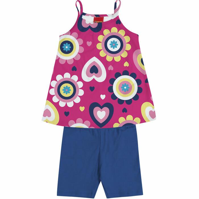 Kyly Primeiro Passos: conjunto feminino com regata em malha macia e ciclista em cotton, estampas variadas. Disponível do P ao G. Perfeito para lojistas que buscam peças versáteis e atraentes. Consulte nossa equipe de vendas.