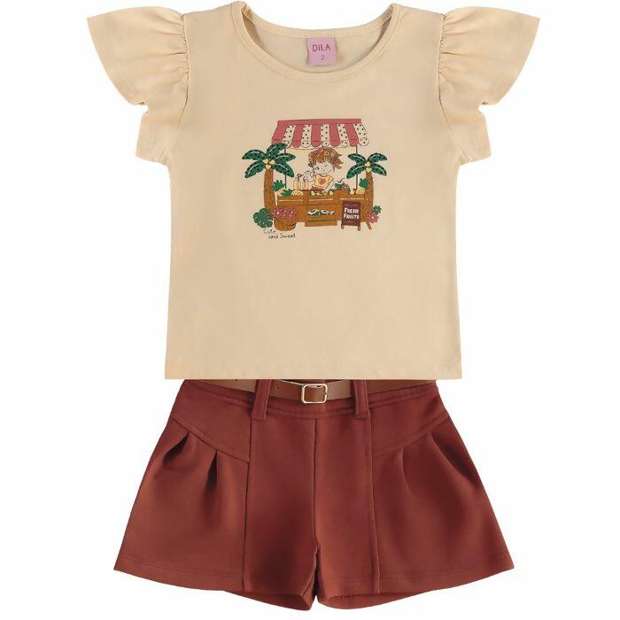 Look prático e charmoso! Blusa em malha fresquinha e short em moletinho para dias de pura diversão. Qualidade Dila para encantar nos primeiros passos.