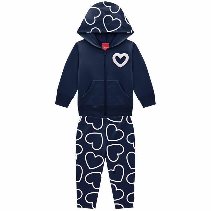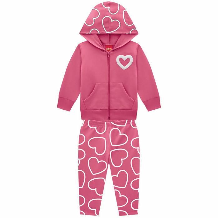 Conjunto Infantil Feminino Corações Capuz 1 ao 3 Kyly | 1000746