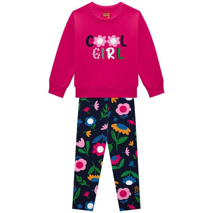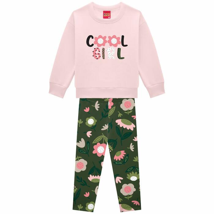 Conjunto Infantil Feminino Cool Girl Blusão Moletom Peluciado e Calça Legging Molicotton Kyly 4 ao 8