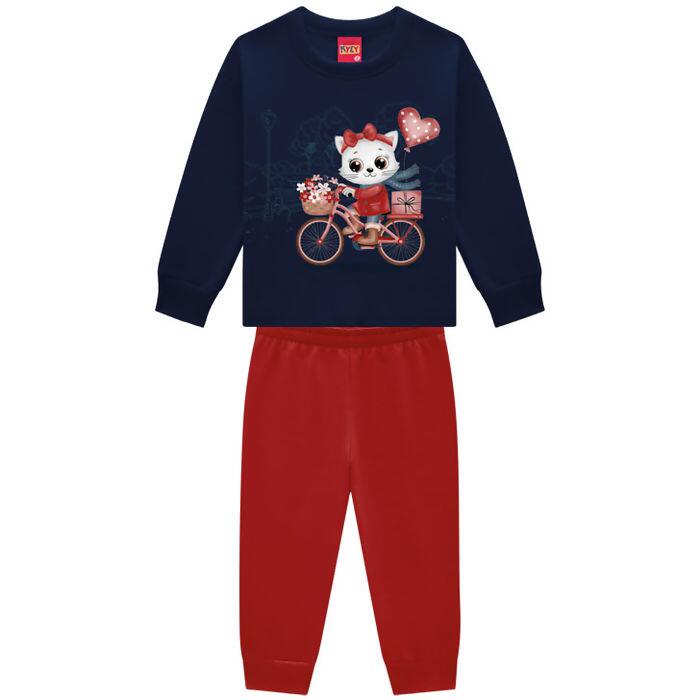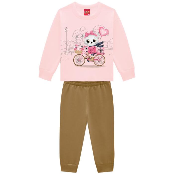 Conjunto Moletom Peluciado Infantil Feminino Gata Bike Kyly 4 ao 8