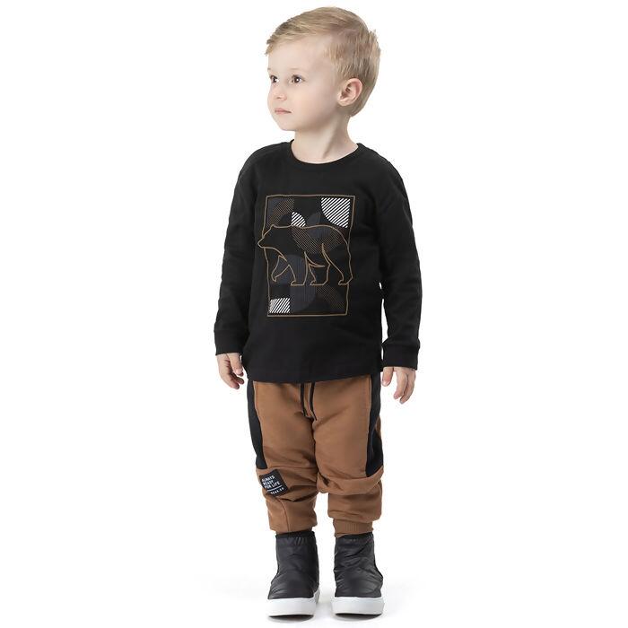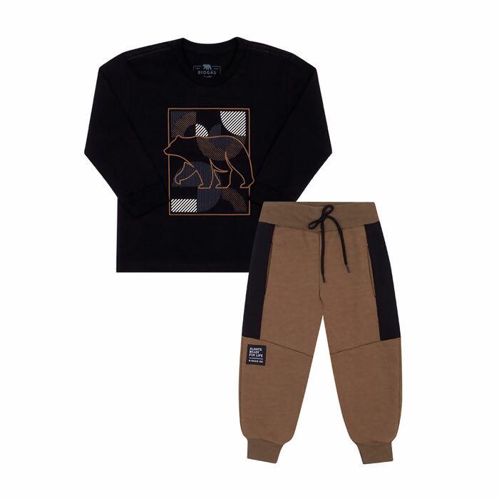 Conjunto masculino Biogás infantil, grade do 1 ao 3, com estampa localizada de urso e calça moletom com cós reto, cordão ajustável e recorte moderno. Ideal para lojistas que buscam peças diferenciadas e confortáveis para o mix infantil. Consulte nossa equipe de vendas. Dicas de estilo: aposte com tênis em tons neutros para um visual atual e descontraído.