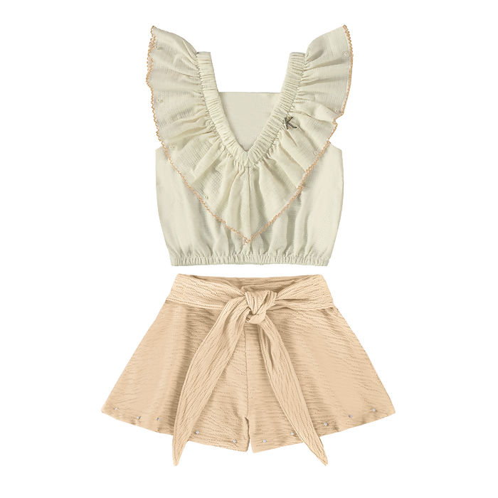Descrição Conjunto Infantil Short Laço 6 ao 12 Kiki Xodó | 3500098