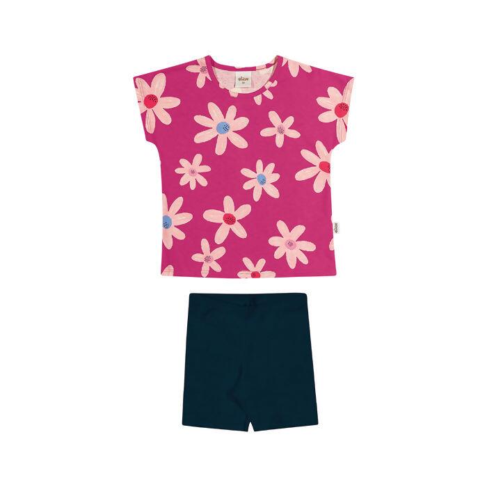 O Conjunto Infantil Menina Estampado Florzinhas Elian possui a blusa confeccionada em meia malha e a bermuda ciclista confeccionada em cotton leve. A bermuda ciclista possui modelagem justa e elástico na cintura, já a blusa possui modelagem justa, gola redonda, manga curta e estampa de florzinhas, um amor! Super versáteis e com estampas fofas, a linha Elian Todo Dia vem para trazer às crianças mais praticidade e conforto para as brincadeiras do dia a dia!
