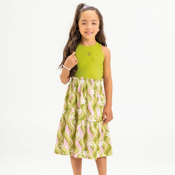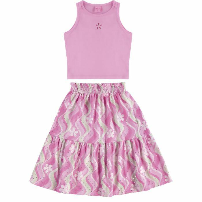 Conjunto Infantil Feminino Blusa Cotton e Saia Midi Estampada 4 ao 10 Dila | 04623