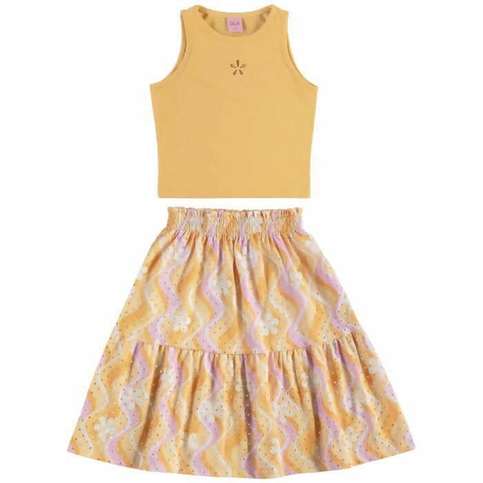 Descrição Conjunto Infantil Feminino Blusa Cotton e Saia Midi Estampada 4 ao 10 Dila | 04623