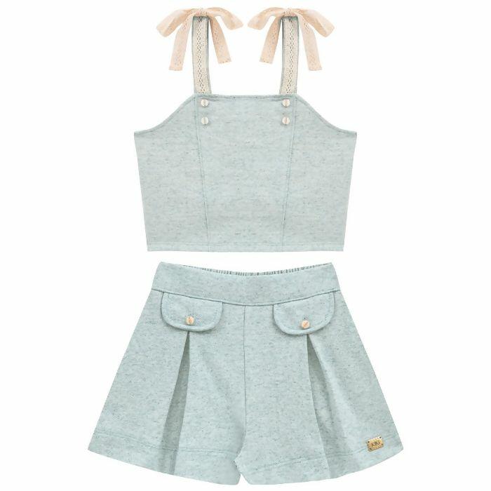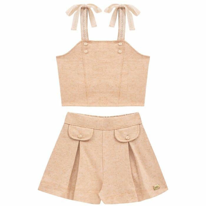 Conjunto Infantil Feminino Shorts com Pregas e Lapelas 6 ao 12 Kiki Xodó | 3500141