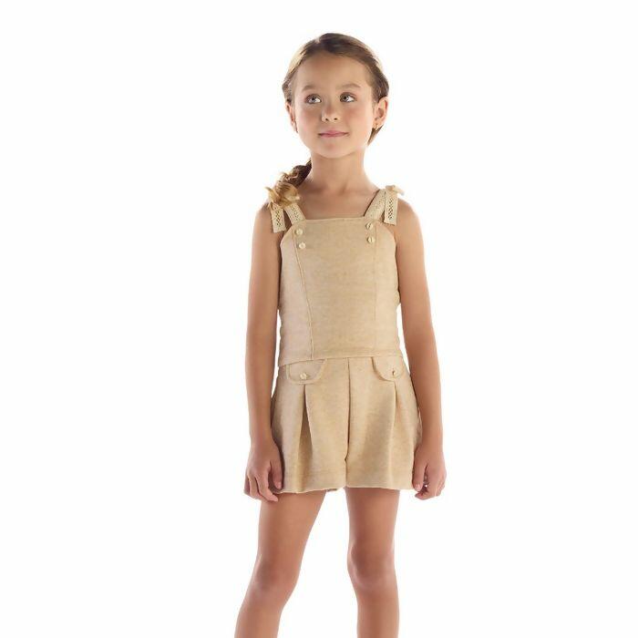 Descrição Conjunto Infantil Feminino Shorts com Pregas e Lapelas 6 ao 12 Kiki Xodó | 3500141