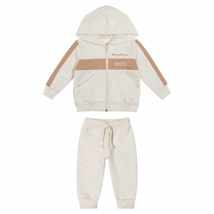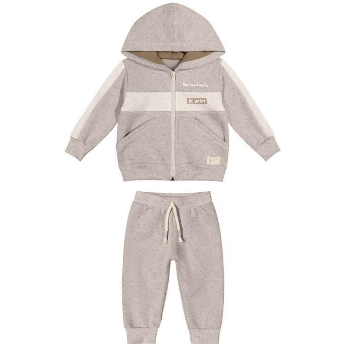 O Conjunto Moletom Infantil Masculino Colorittá é perfeito para lojistas que desejam oferecer conforto e estilo para o público infantil. A jaqueta, confeccionada em linho felpado, possui zíper e estampa puff com a mensagem "And Now Time to Be Happy" (E Agora É Hora de Ser Feliz), proporcionando um toque moderno e inspirador. A calça de moletom, com cadarço e punho, garante conforto e praticidade para o dia a dia.