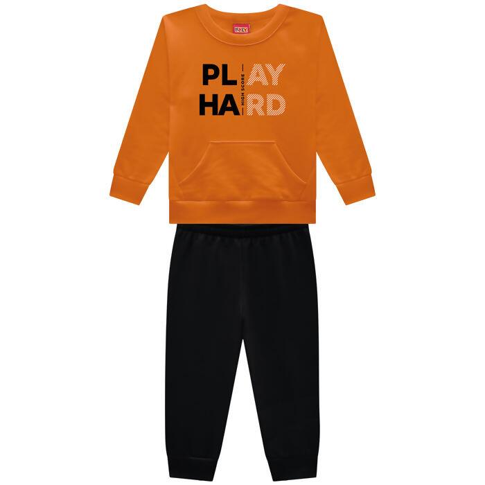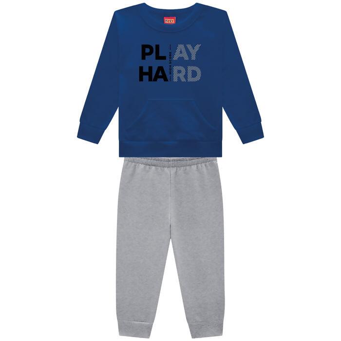 O Conjunto Infantil Masculino Kyly une modernidade e conforto para o dia a dia das crianças. O casaco em moletom peluciado apresenta bolso frontal e a frase "Play Hard", proporcionando um visual autêntico e cheio de personalidade. Já a calça em moletom com punho oferece ajuste perfeito e total liberdade de movimento.