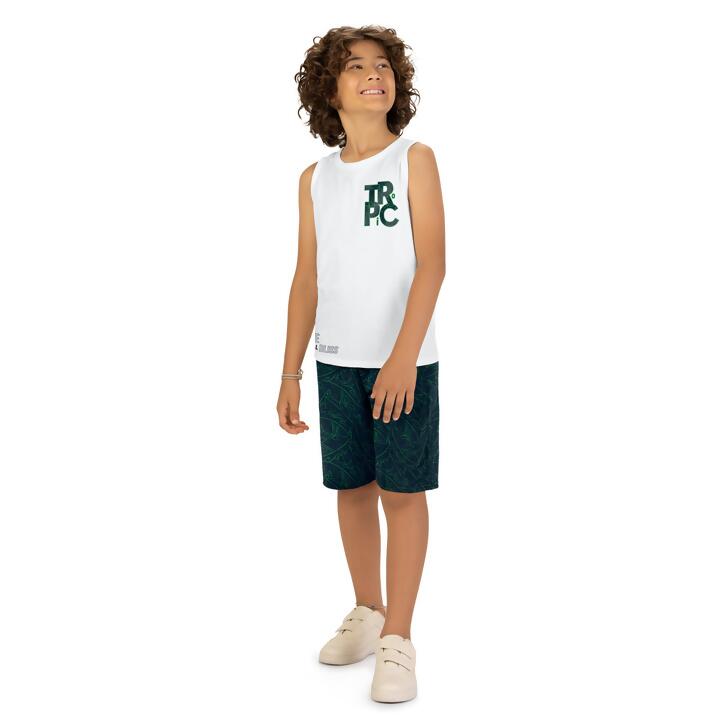 Conjunto confeccionado em malha leve e confortável, composto por regata com estampa temática tropical e bermuda coordenada. O modelo é ideal para o dia a dia, oferecendo praticidade e estilo para os meninos.