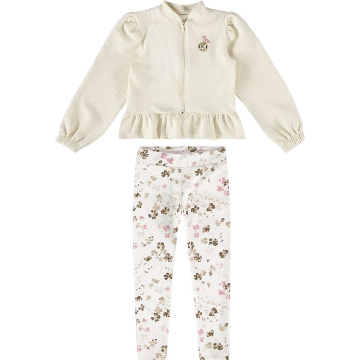 Descrição Conjunto Jaqueta Infantil Feminino Flores 1 ao 4 Kiki Xodó | 2600084