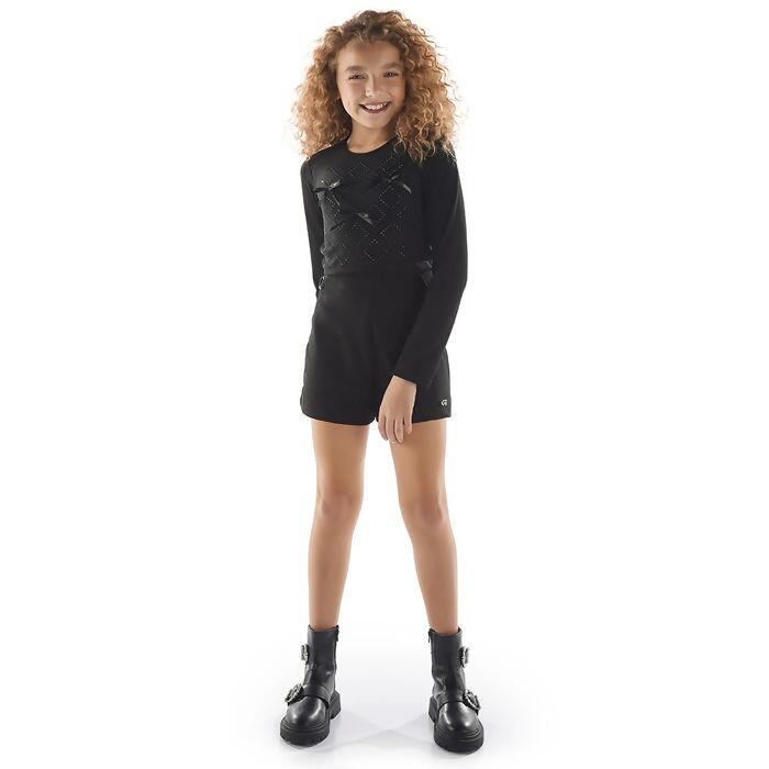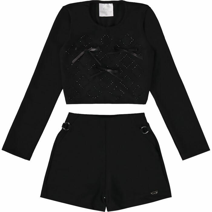 Conjunto Blusa Manga Longa com Aplicação de Laço e Short ¿ Menina Anjo (12 ao 18)
