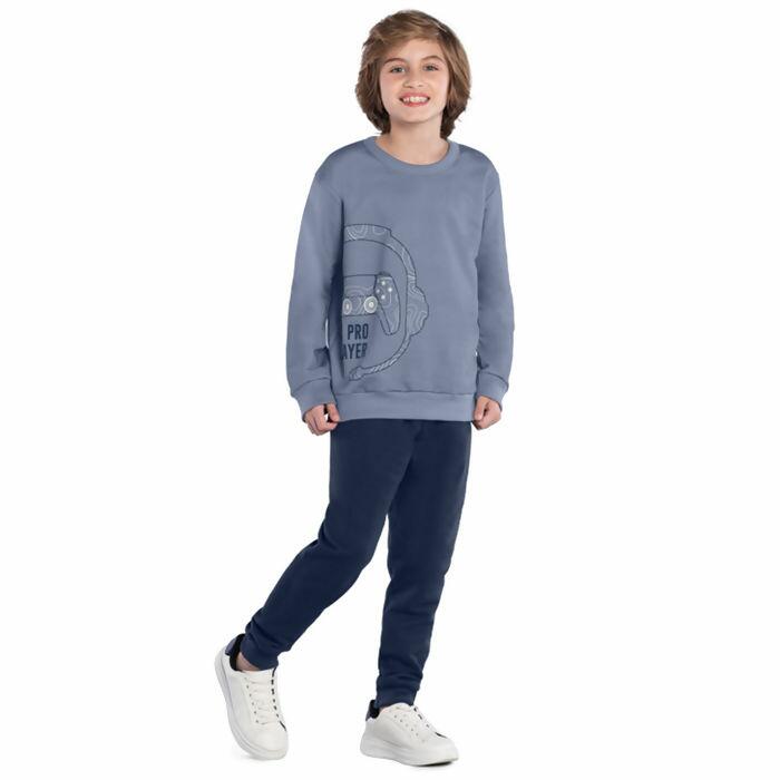 O Blusa juvenil masculina Kyly possui modelagem tradicional, divertida estampa frontal. A Calça Juvenil masculina na Kyly possui barra em molde e elástico confortável no cós e punho para maior conforto da criança.