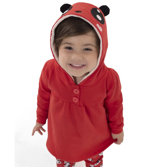 Conjunto com capuz estampado.