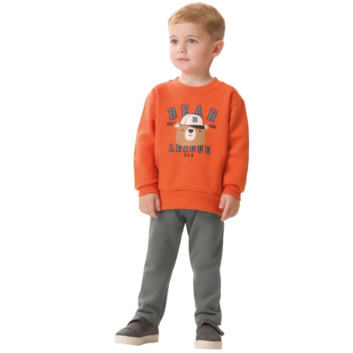 Conjunto infantil masculino com temática Bear, trazendo apelo lúdico e visual atrativo. Peça estratégica para lojistas que desejam enriquecer o mix baby masculino com conjuntos de bom valor percebido.