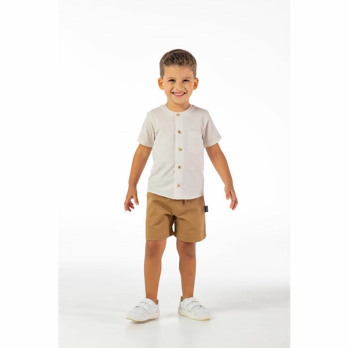 O Conjunto Vrasalon é sinônimo de charme e elegância. A camisa com gola portuguesa oferece um toque clássico, enquanto a bermuda garante conforto e liberdade nos movimentos. Uma opção ideal para ocasiões especiais, mantendo o estilo social infantil em destaque.