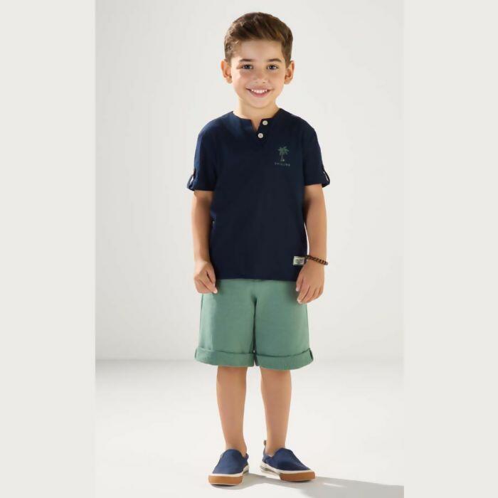 Conjunto Infantil Masculino Valent com Camiseta Bata e Bermuda Texturizada