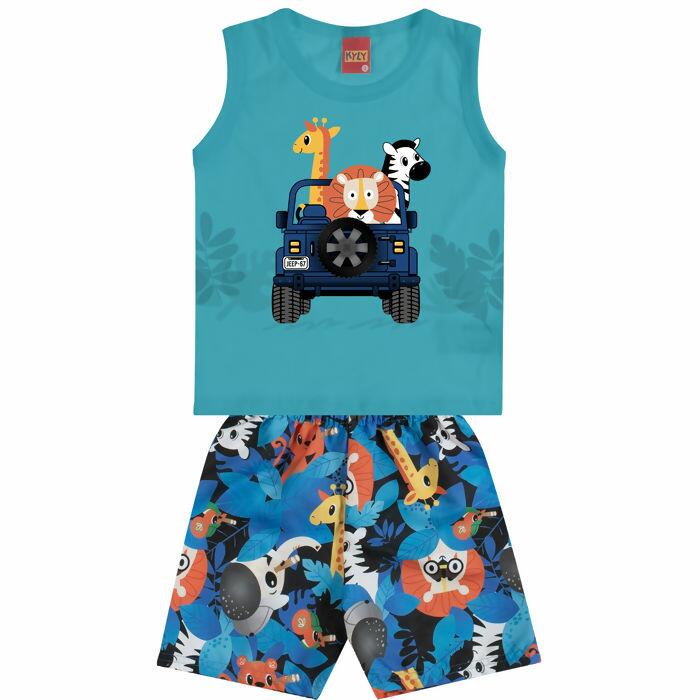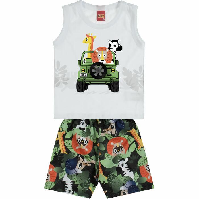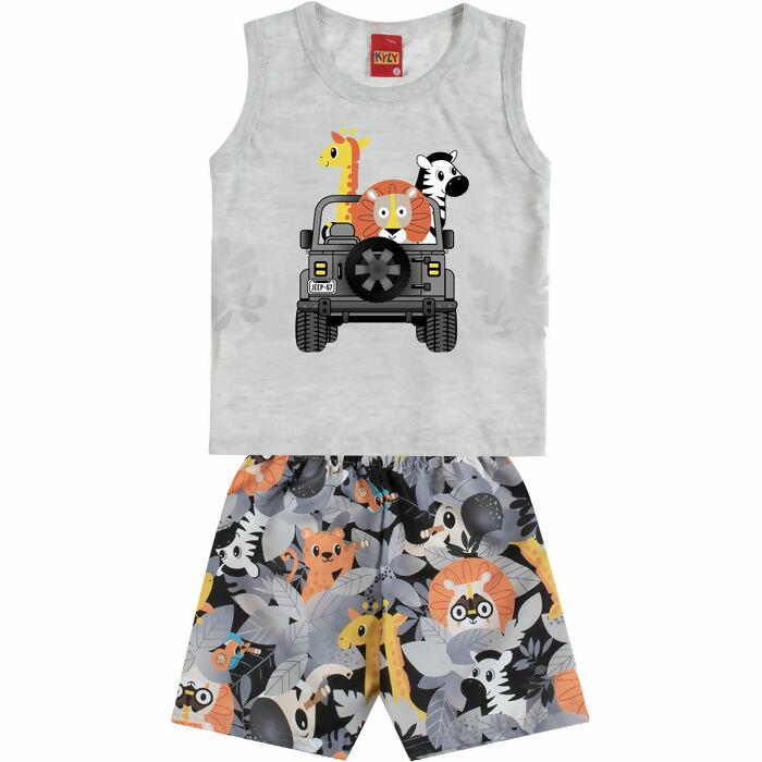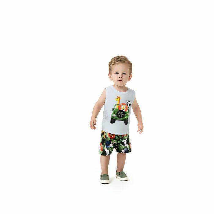 Conjunto infantil com estampa de jeep safari, moderno e divertido para os meninos que adoram explorar. Peça leve, confortável e versátil, ideal para compor looks fresquinhos na estação mais quente.