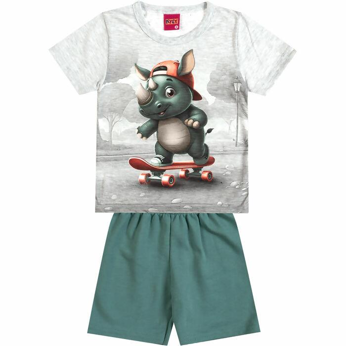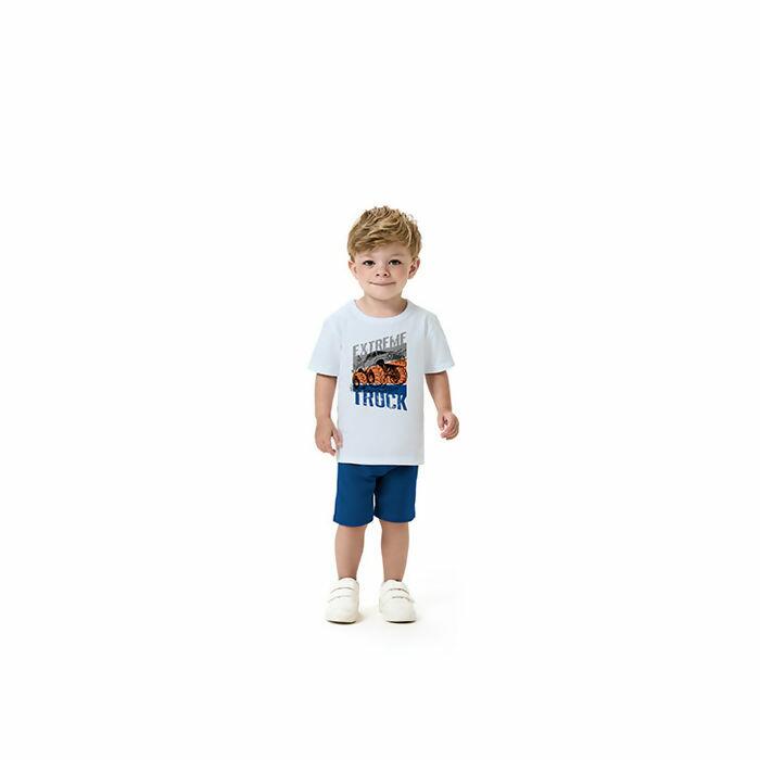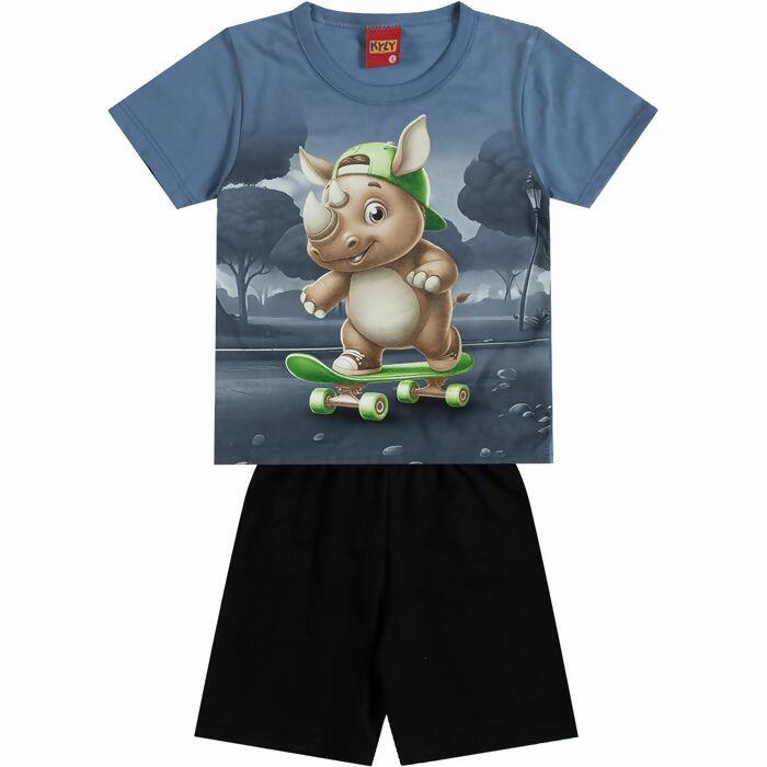 Diversão garantida com muito conforto! O Conjunto Masculino Infantil Kyly traz camiseta manga curta com estampas alegres e bermuda fresquinha para os dias de calor. Ideal para a rotina ativa dos meninos, com caimento leve e ótimo acabamento.