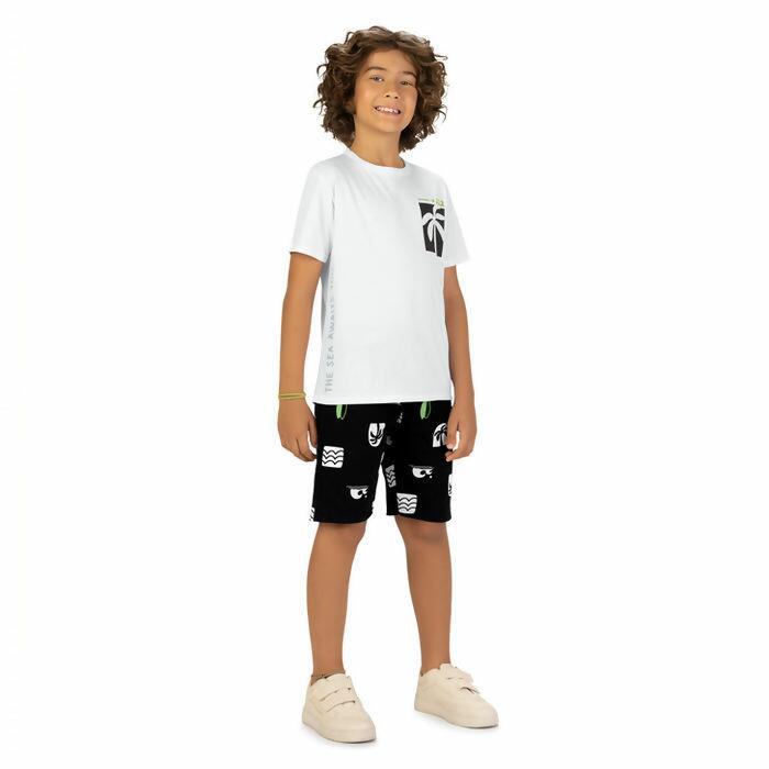 Conjunto juvenil masculino Kyly composto por camiseta com estampa temática ¿The Sea¿ e bermuda em malha confortável. Uma proposta moderna e despojada para compor coleções casuais com forte apelo visual e estilo urbano.