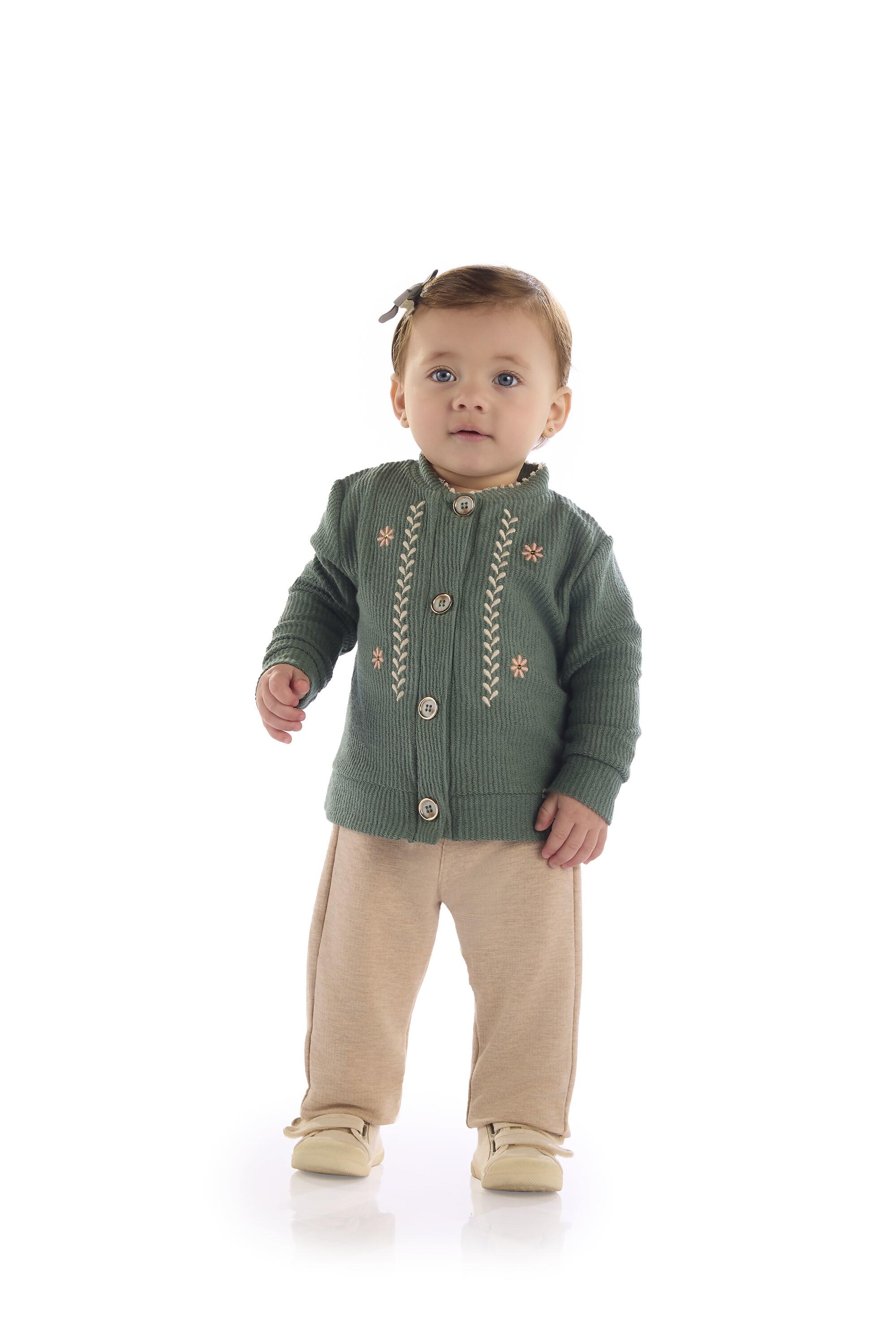 Descrição Conjunto Pagão Casaco Bordado e Calça Kiki Xodó | 1600005