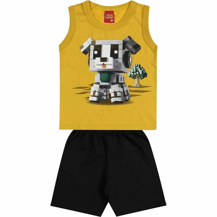 Conjunto com regata estampada e bermuda confortável, perfeito para acompanhar o ritmo dos pequenos com leveza e liberdade.