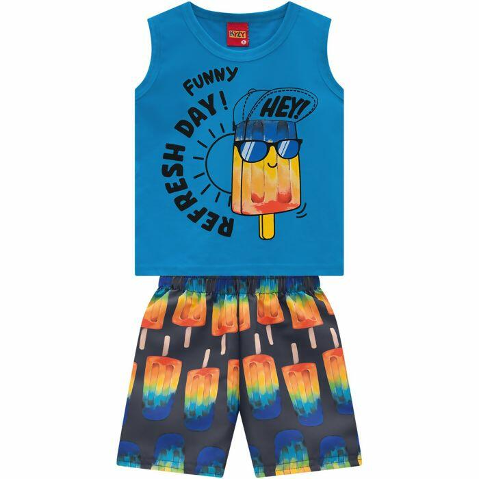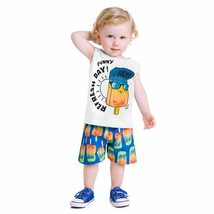 Para os pequenos aproveitarem com leveza e estilo! Conjunto composto por regata em meia malha com estampa divertida e bermuda confortável com cós em elástico. Perfeito para os dias mais quentes, oferecendo liberdade nos movimentos e muito charme para a fase dos primeiros passos.