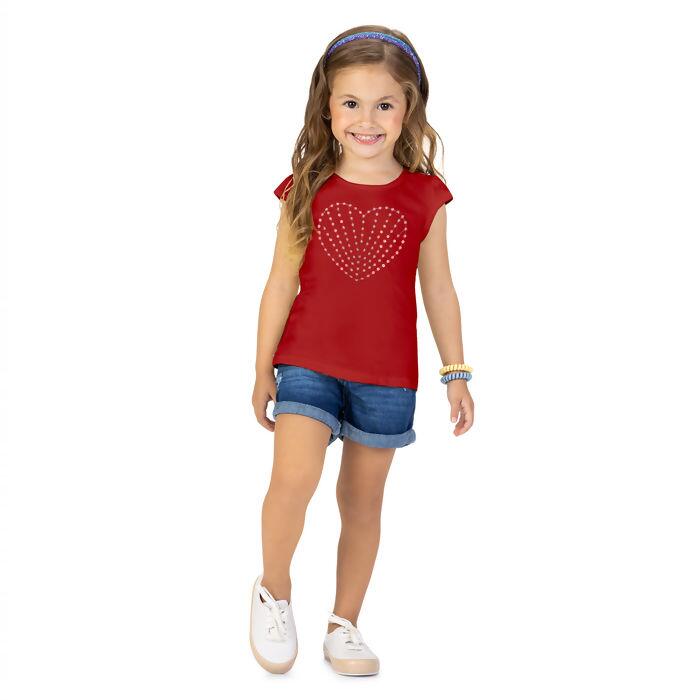 O Cropped Kyly traz brilho e diversão ao visual infantil com estampa de coração e lantejoulas delicadas. A peça é leve, confortável e perfeita para dias quentes, garantindo liberdade nos movimentos.