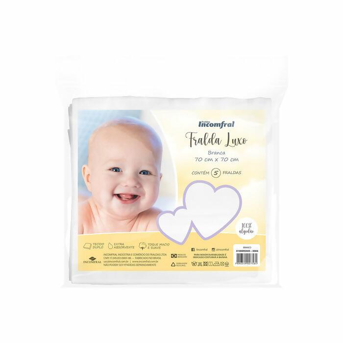Descrição Fralda Luxo BRANCA 70X70 Pct 5 unidades Incomfral | 32024